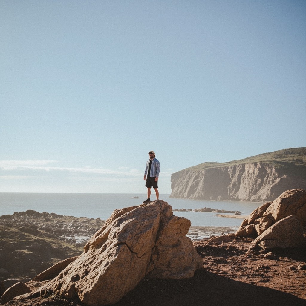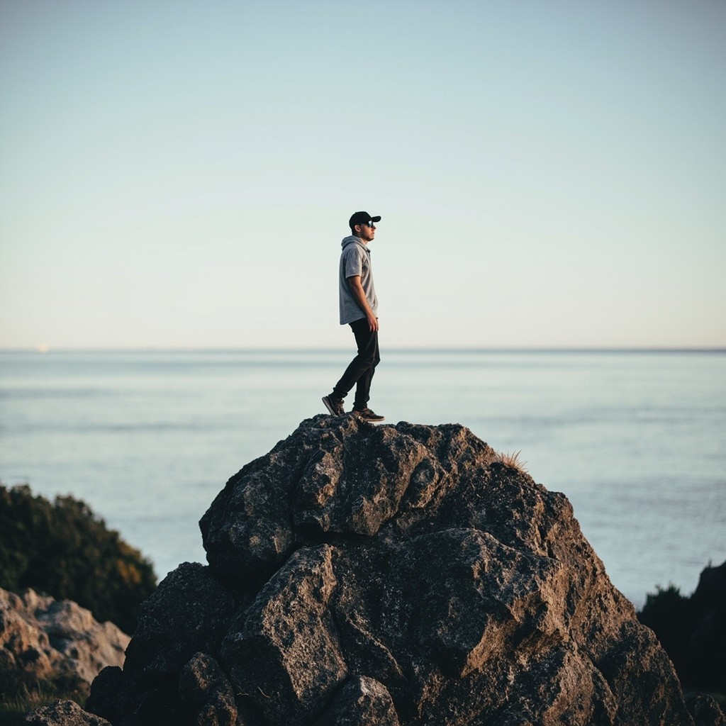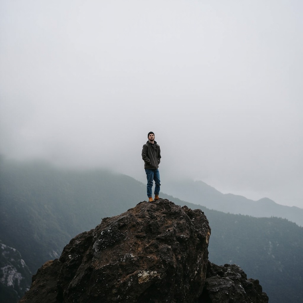 Person Standing on Top of a Rock