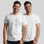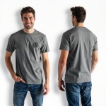 Men Wearing Product T-Shirt Front and Back, Unworn T-Shirt Front Side