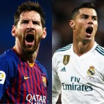 Messi and Ronaldo Screaming in Barcelona and Real Madrid Shirts