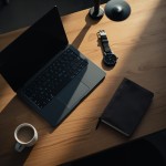 Minimalist Workspace with Matte Black Laptop and Luxury Accessories