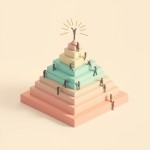 Minimalist 3D Isometric Pyramid Symbolizing Career Progression with Pastel Gradients