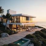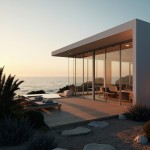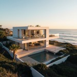 Modern Coastal House with Ocean View and Sunset Lighting
