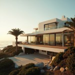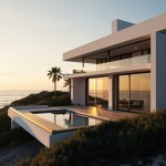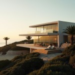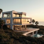 Modern Coastal House with Ocean View and Sunset Lighting