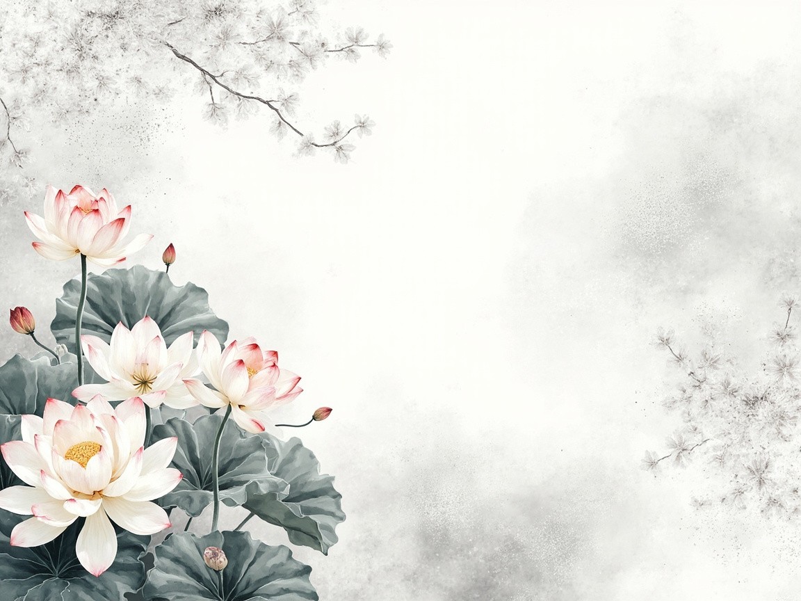 Spring floral in watercolor vector background. Luxury wallpaper design with white lotus flowers, line art, silver texture. Elegant silver blossom flowers illustration suitable for fabric, prints, cover. illu, photography, ultra-realistic, modern aesthetic, clean design, vibrant colors, bright lighting, high contrast, natural environment, realistic textures, sharp focus, professional DSLR, 35mm lens, stock photo style, 8k, photorealism, no vintage, no retro, no antique, no old-fashioned, avoid grunge, avoid patina