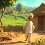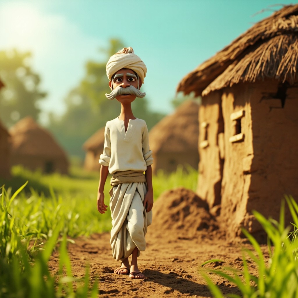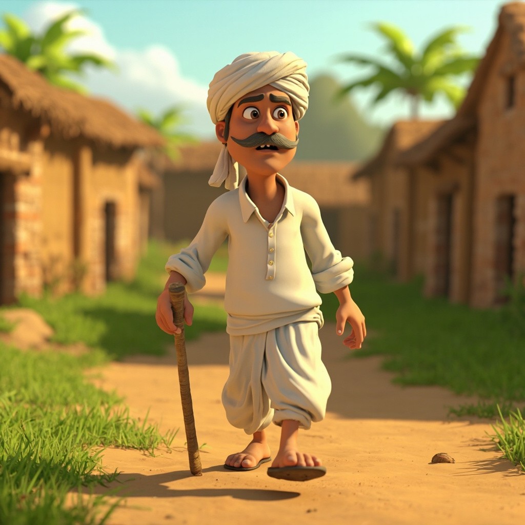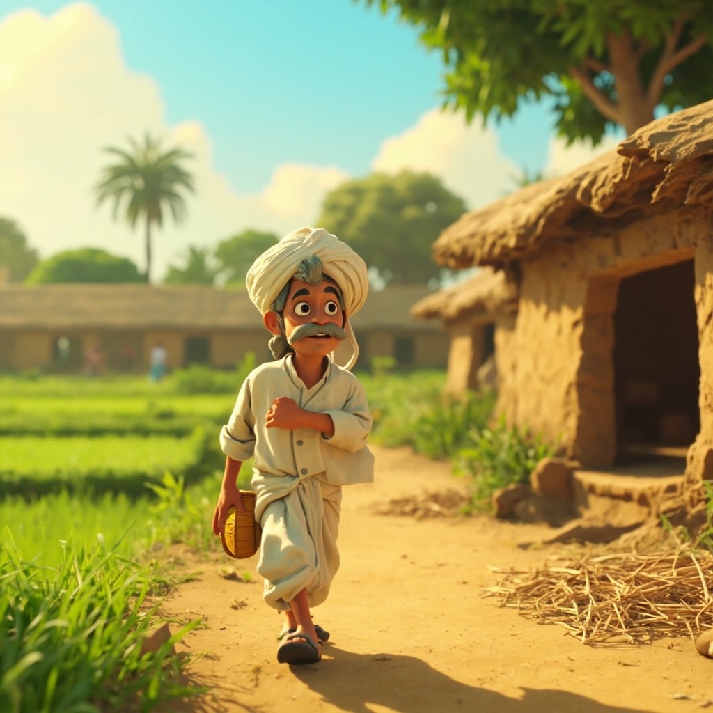 3D Cartoon Morning in Rural Indian Village with Farmer Mohan