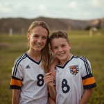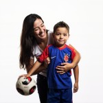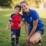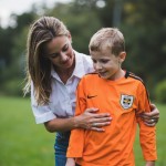 Mother Standing Beside Child in Soccer Uniform