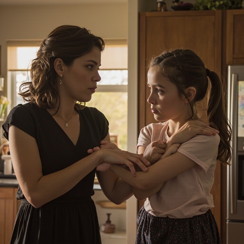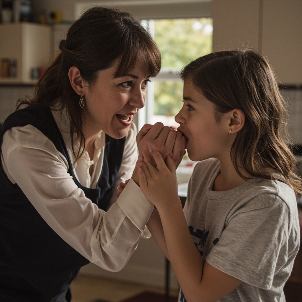 Mother Teaching Daughter with Slap on the Wrist Metaphor