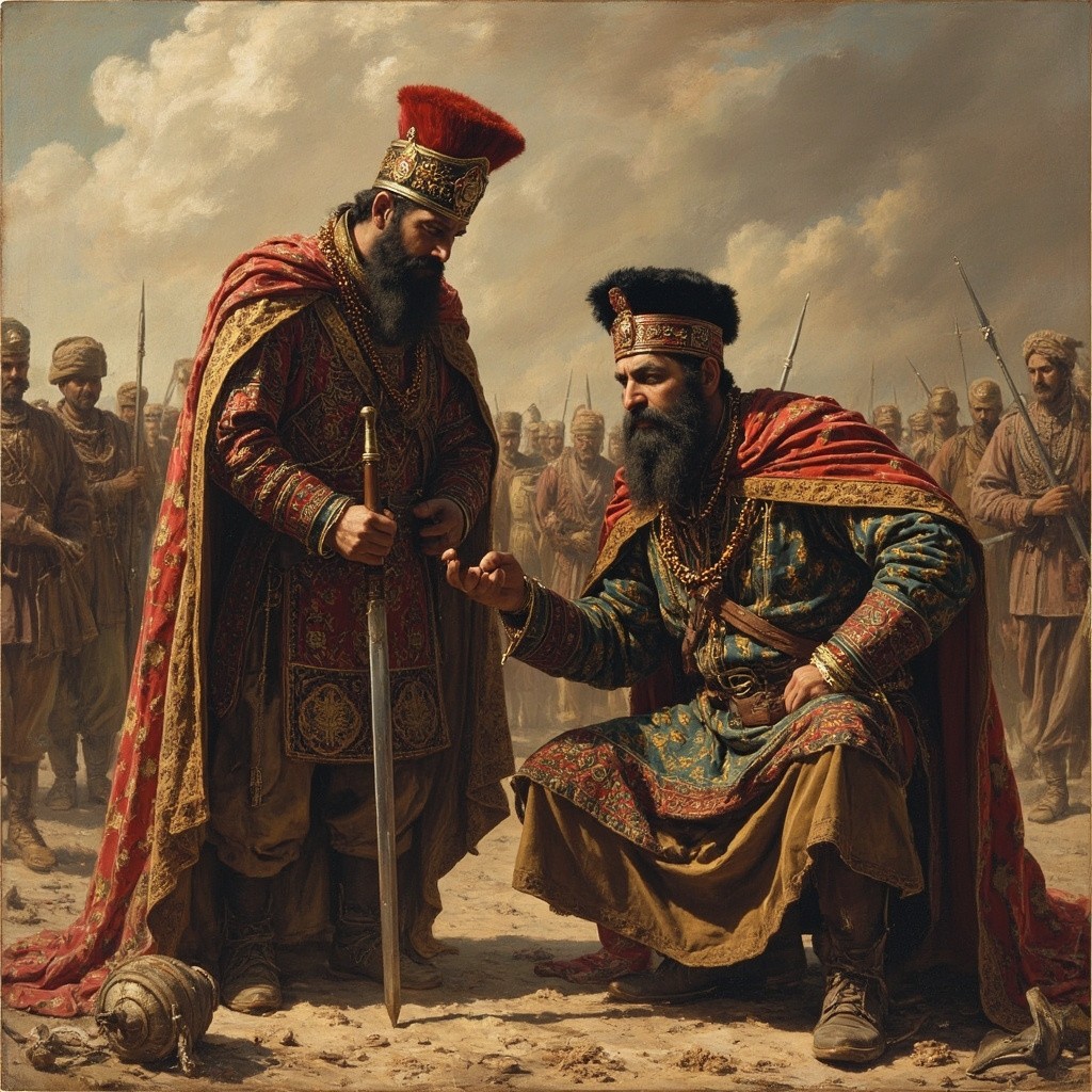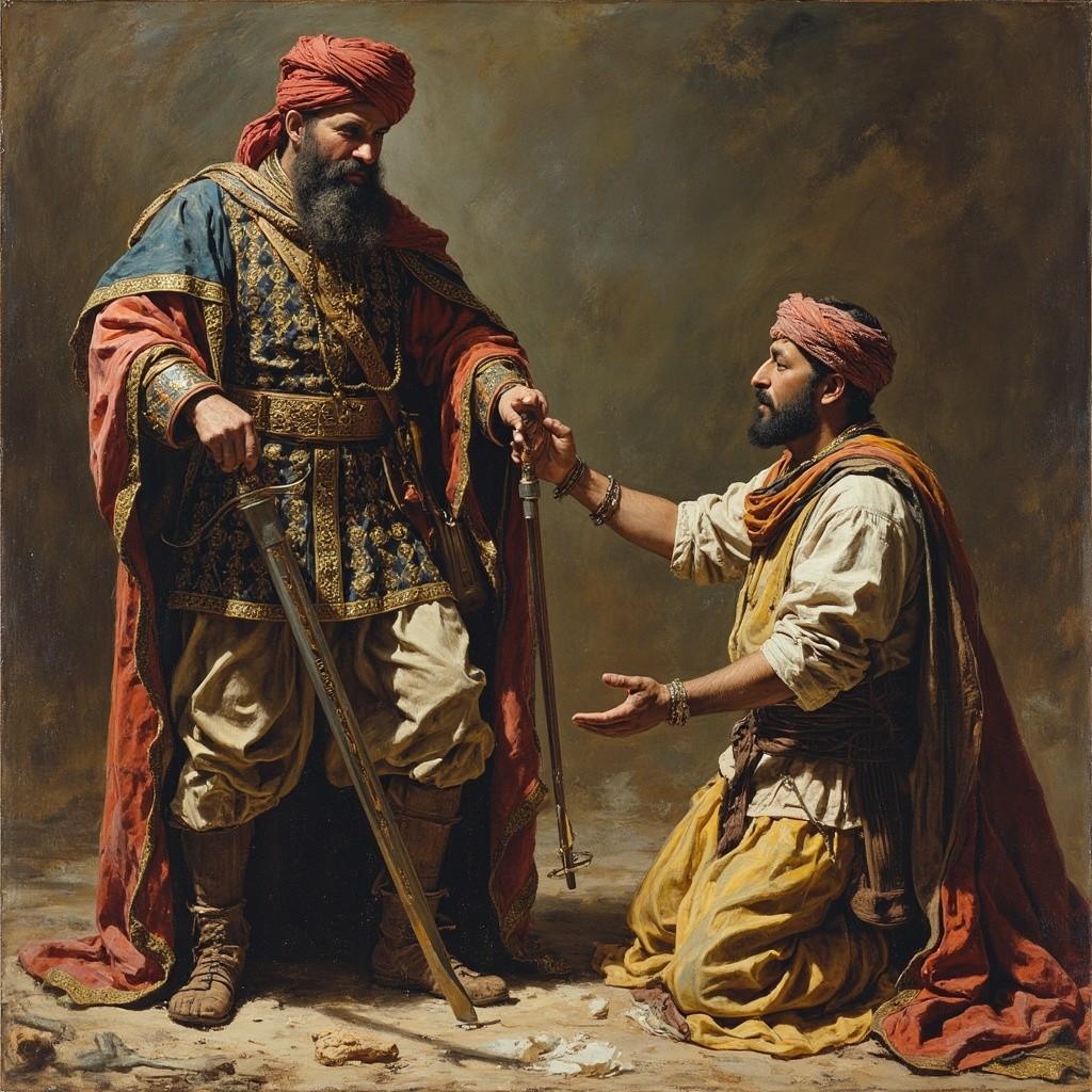 Rough Portrait of Nadir Shah in War Attire Kneeling King Jalu, India