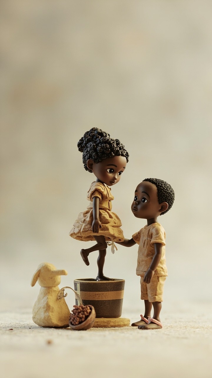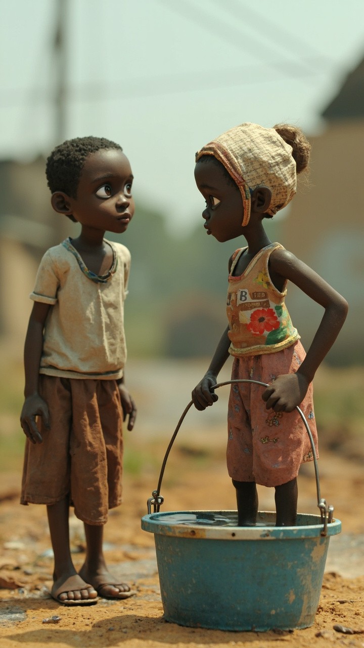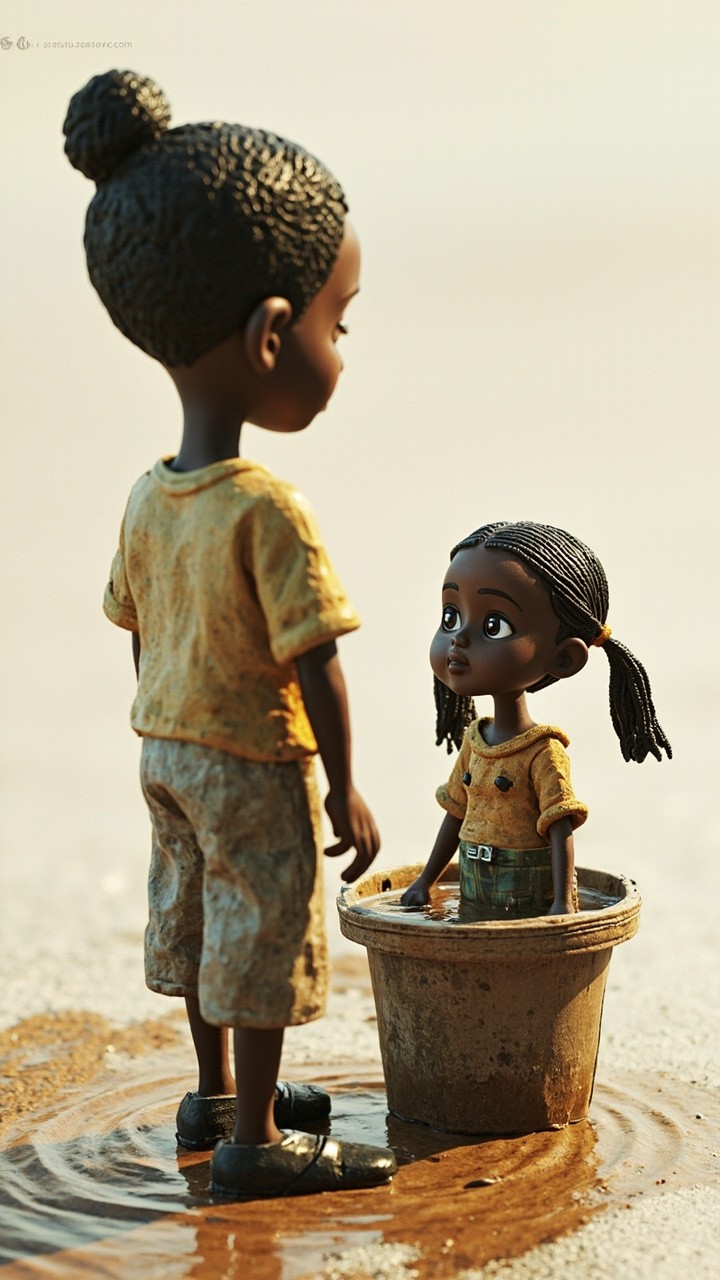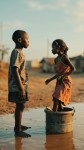 3D Image of Nigerian Boy Observing Girl in Water