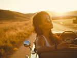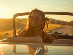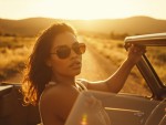 Nigerian Woman Driving Vintage Convertible During Golden Hour