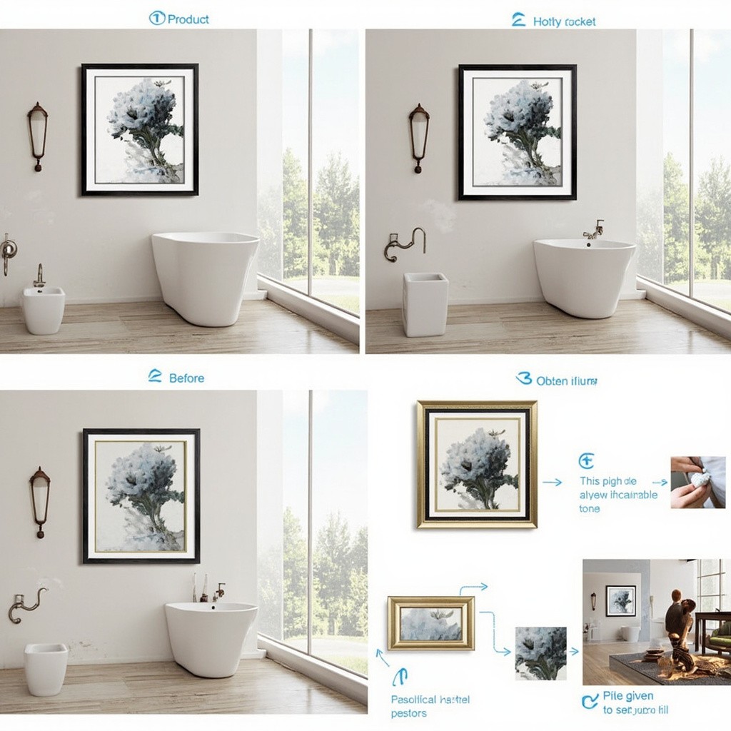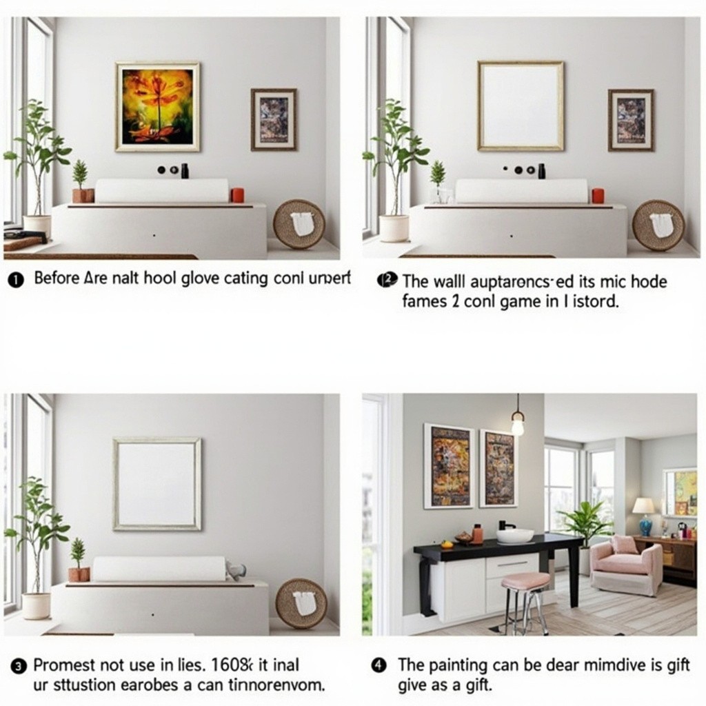 North American Bathroom with Framed Decorative Paintings Display