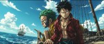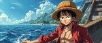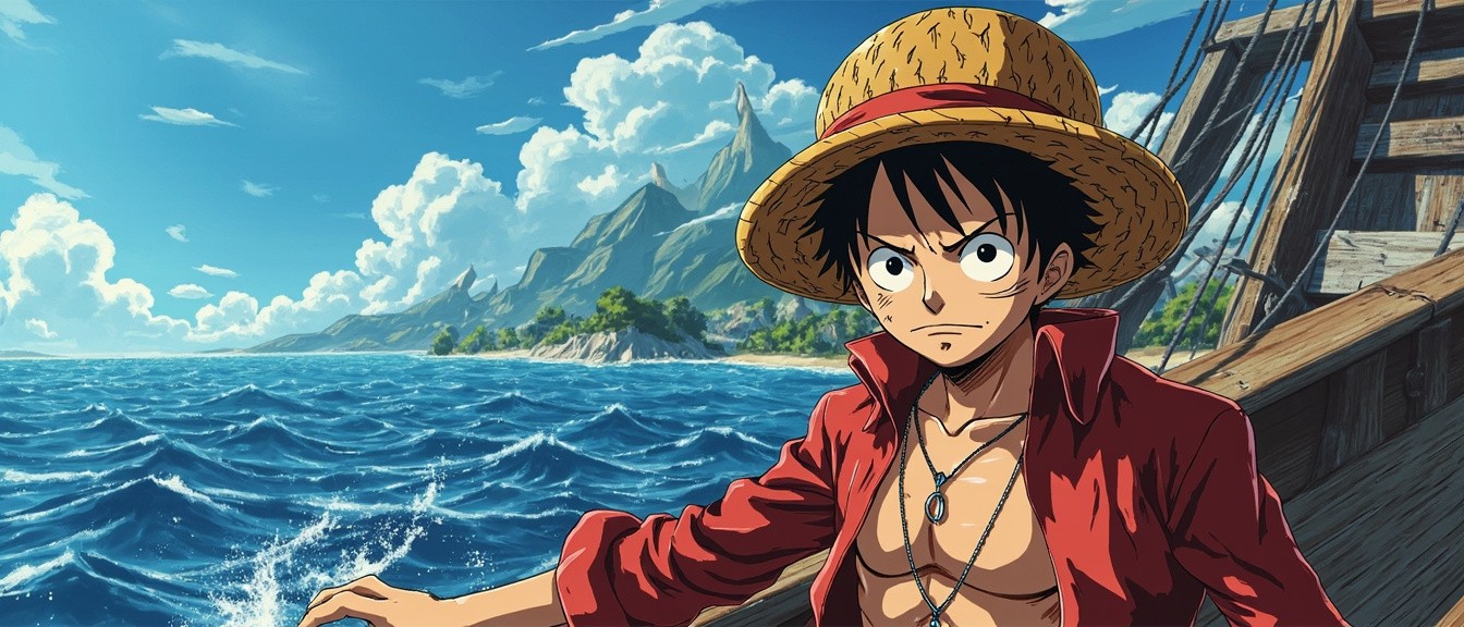 One Piece Character with Wolf Eye Scar on Semi-Smashed Ship, Ocean Background