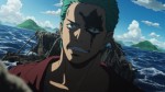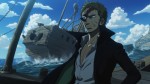 One Piece Character with Wolf Scar in Ocean with Semi-Smashed Ship Background
