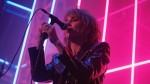 Pat Benatar Performance Stage Poster with Neon Lights and Grainy Texture