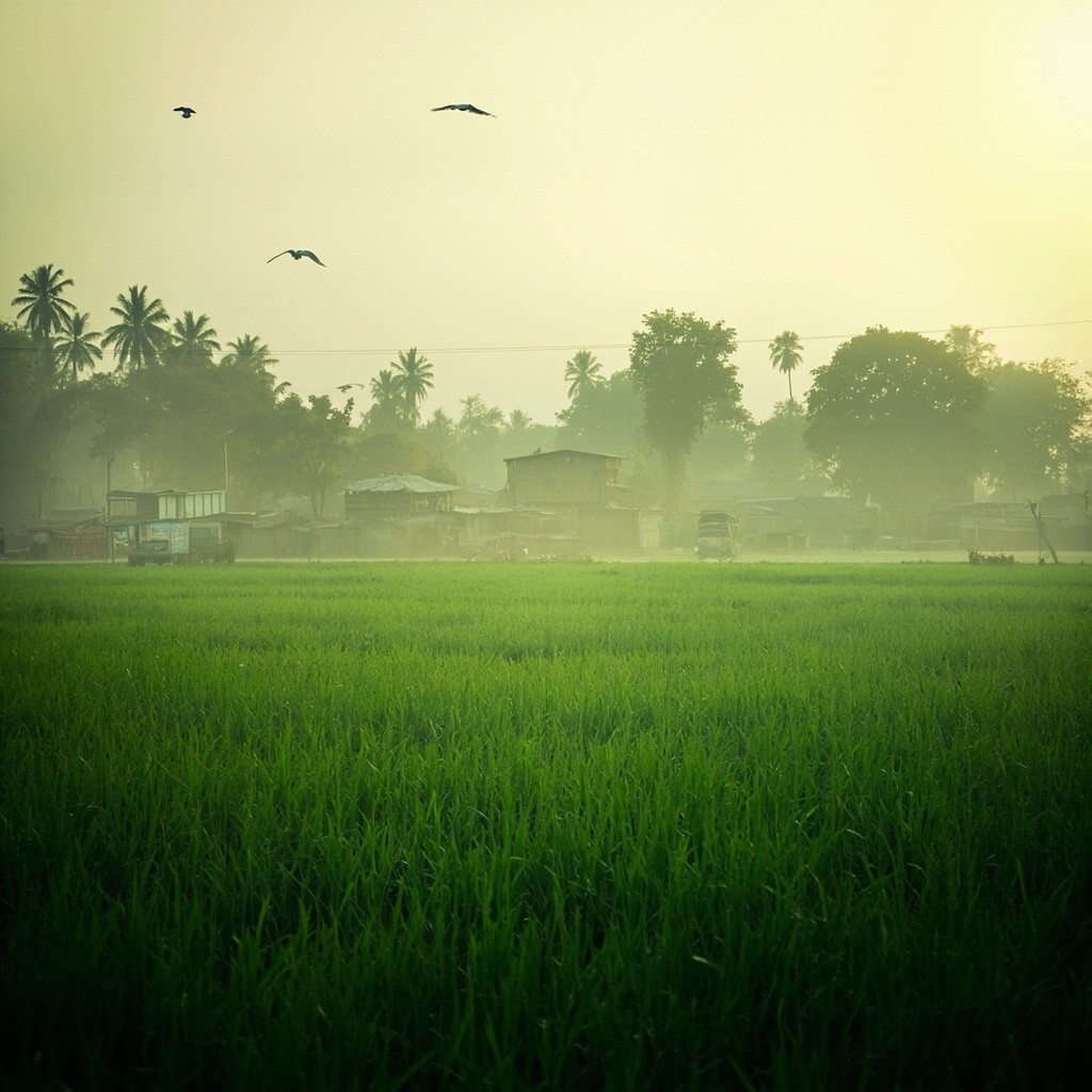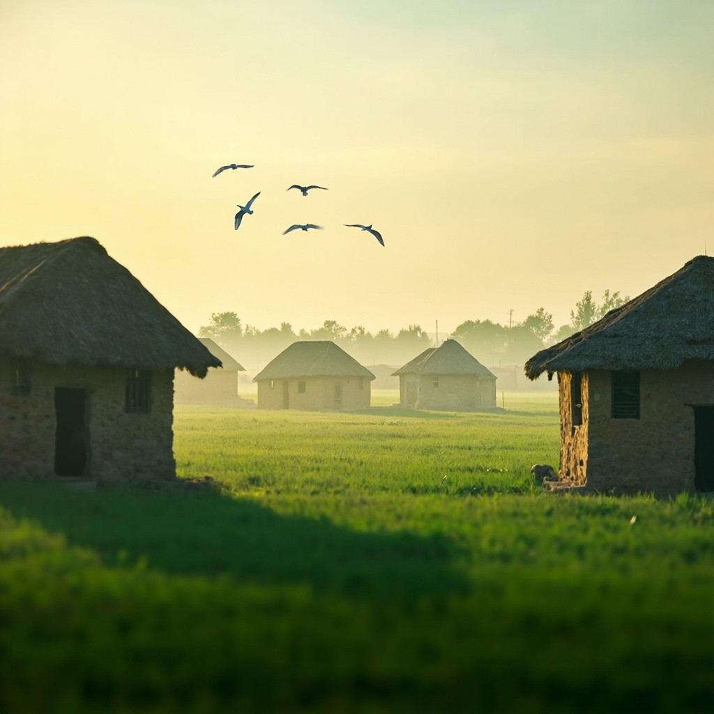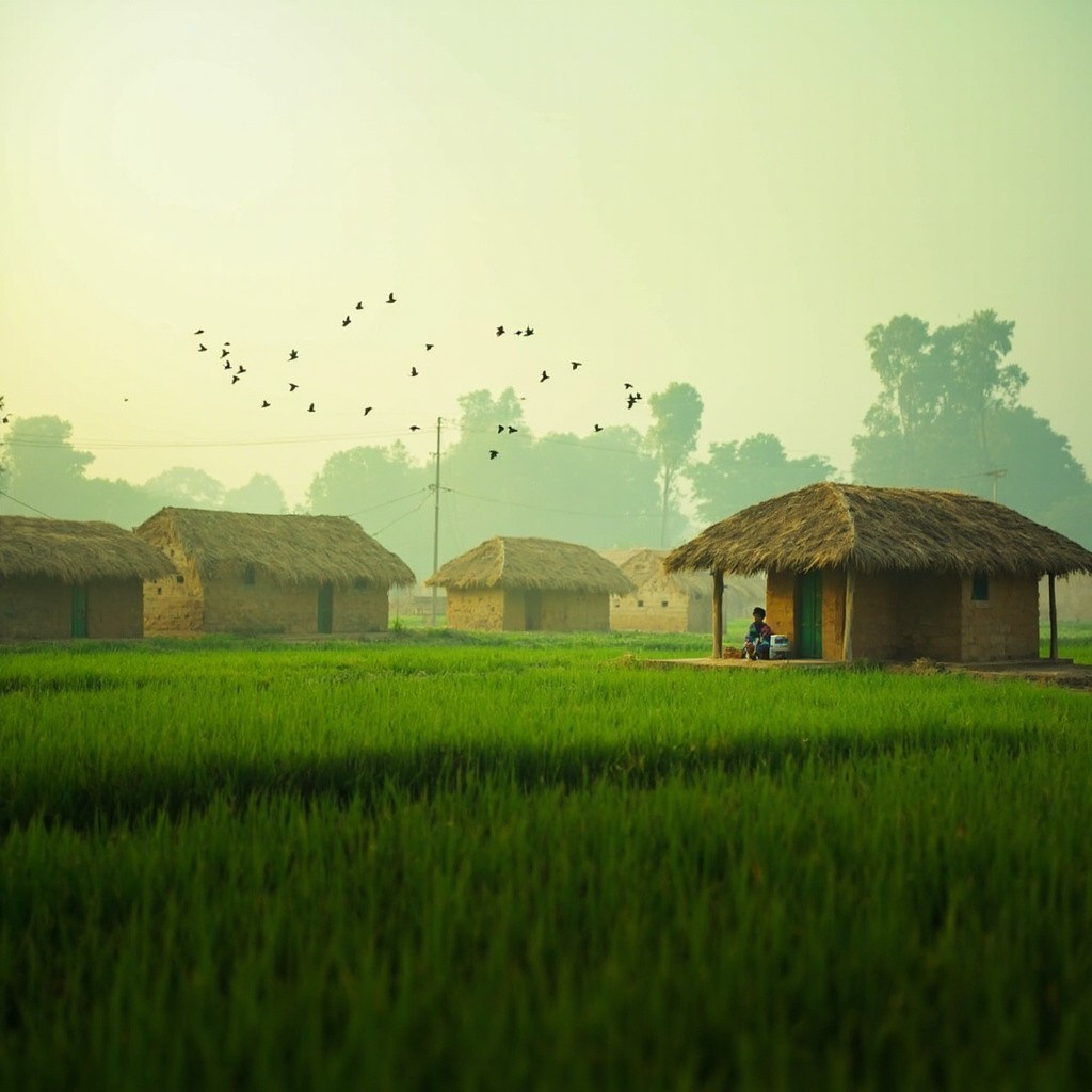 Peaceful Morning in Budhaul Beldari Nawada, Indian Village with Mud Houses and Green Fields