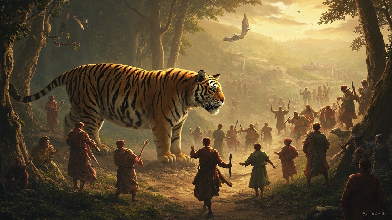 Group of People Observing Tiger From Distance