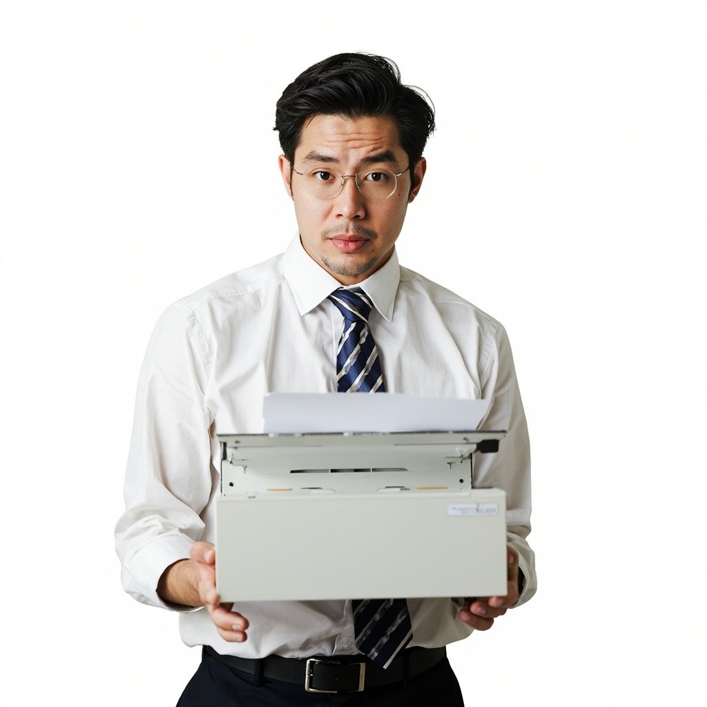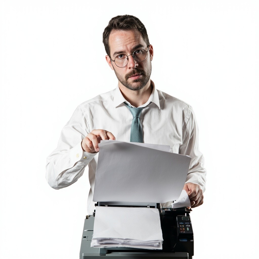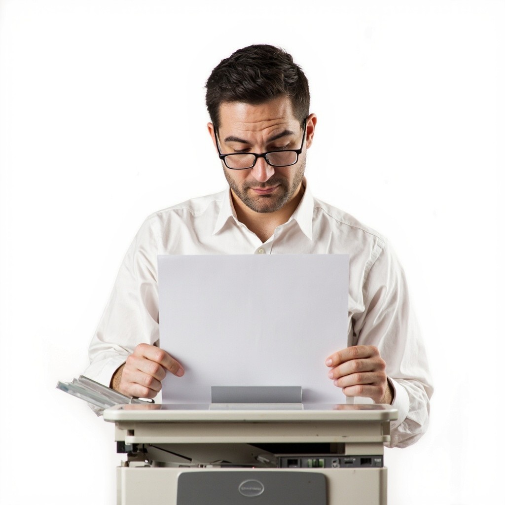 Person Making Photocopies on White Background