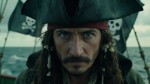 Stormy Ocean Background with Pirate Captain and Skull-and-Crossbones Flags