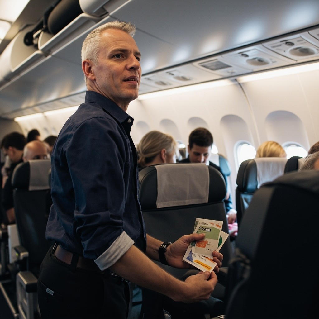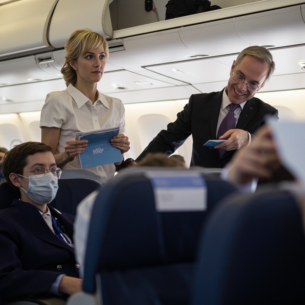 Pre-Landing In-Flight Sales, Immigration Form Distribution and Seat Belt Sign