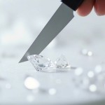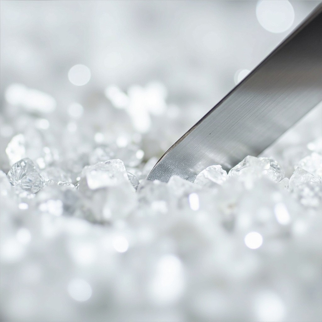 Macro Close-Up of Crystal and Diamond Cutting on White Background