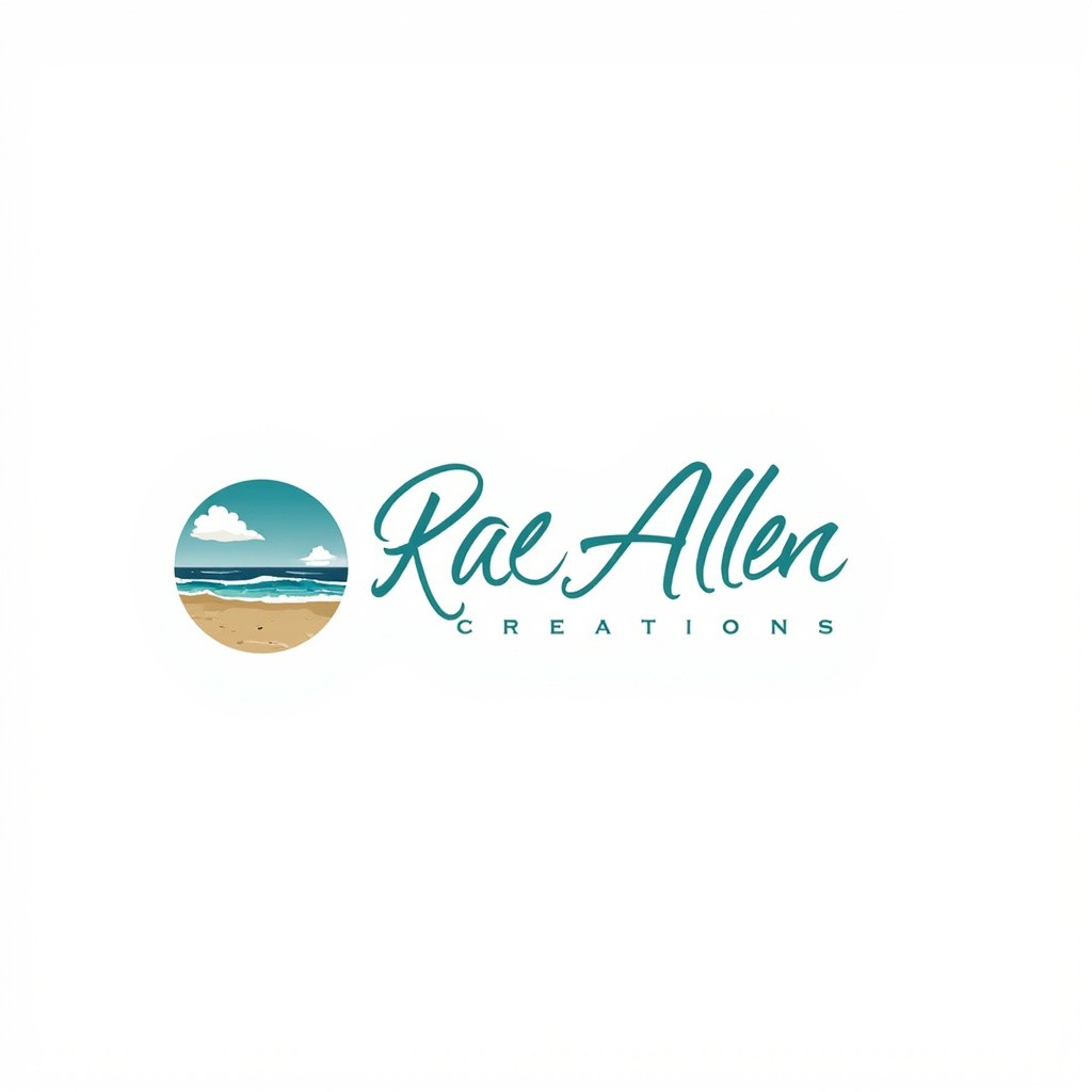 Rae Allen Creations Business Logo, Coastal Beach Theme, White Background