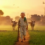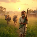 3D Cartoon of Indian Farmer Ramlaal in Village at Sunrise