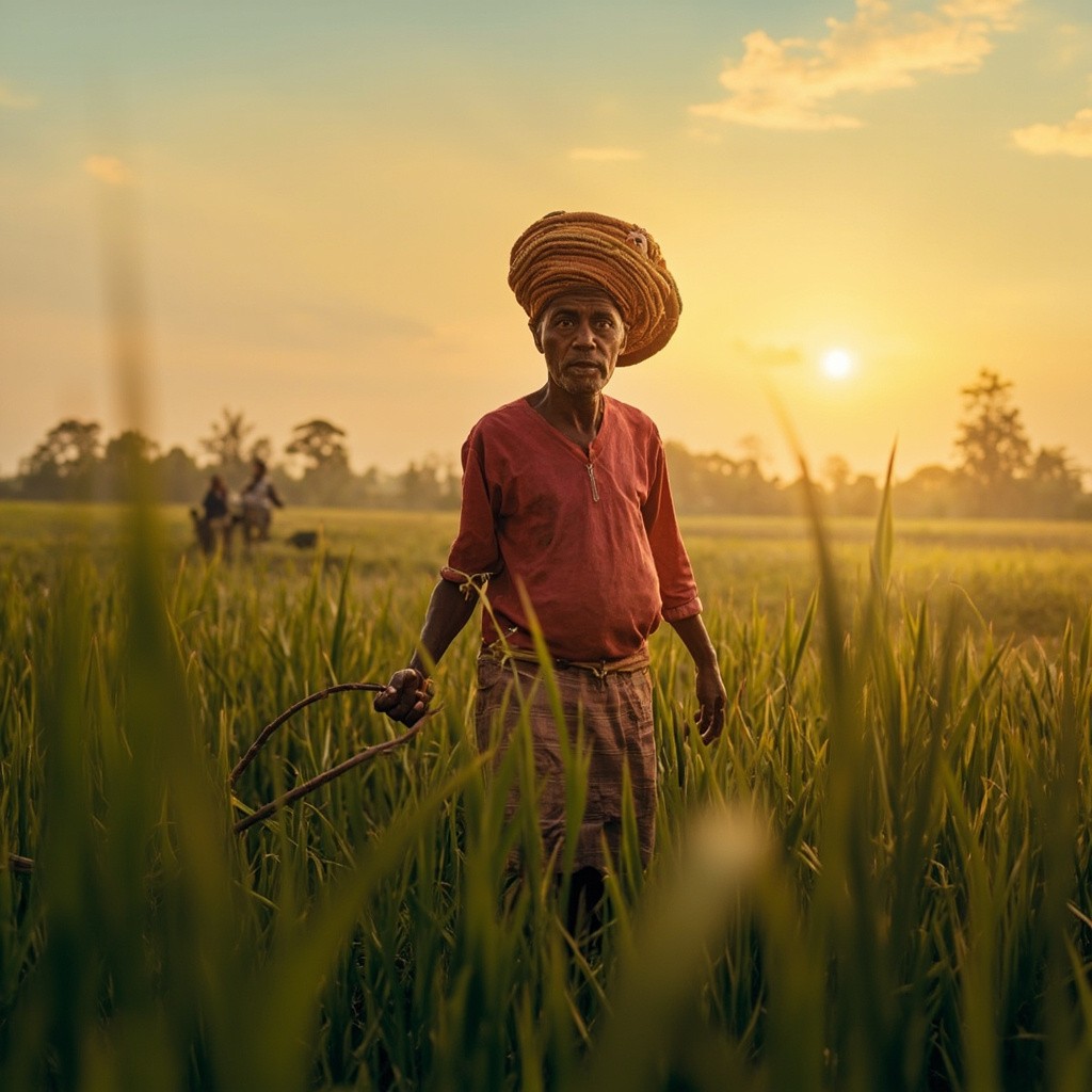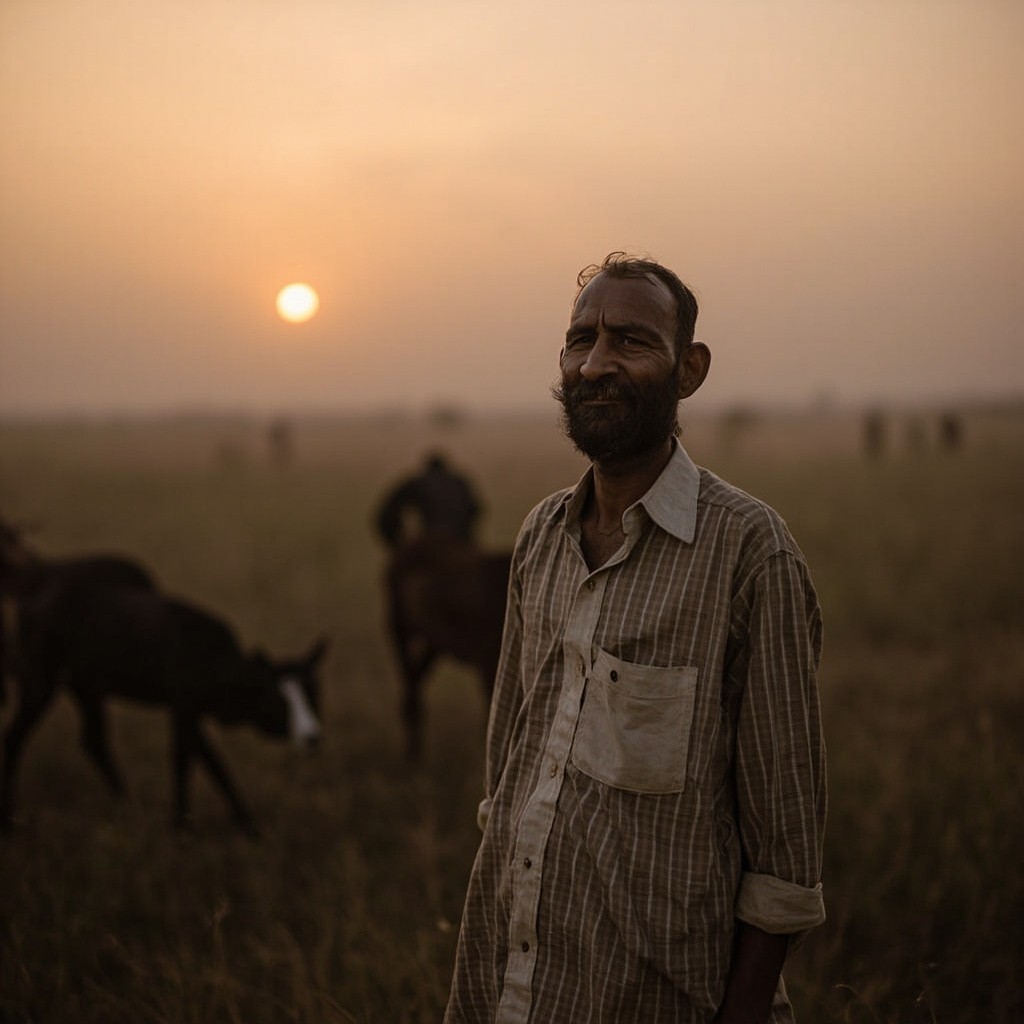 Farmer Ramu Returning from Fields at Dusk