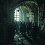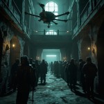 Black Market Cyber-Clinic in Ruined Cathedral with Surveillance Drone