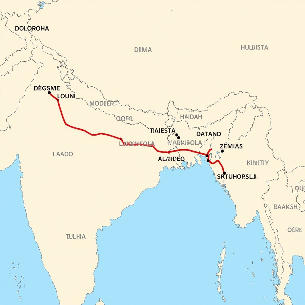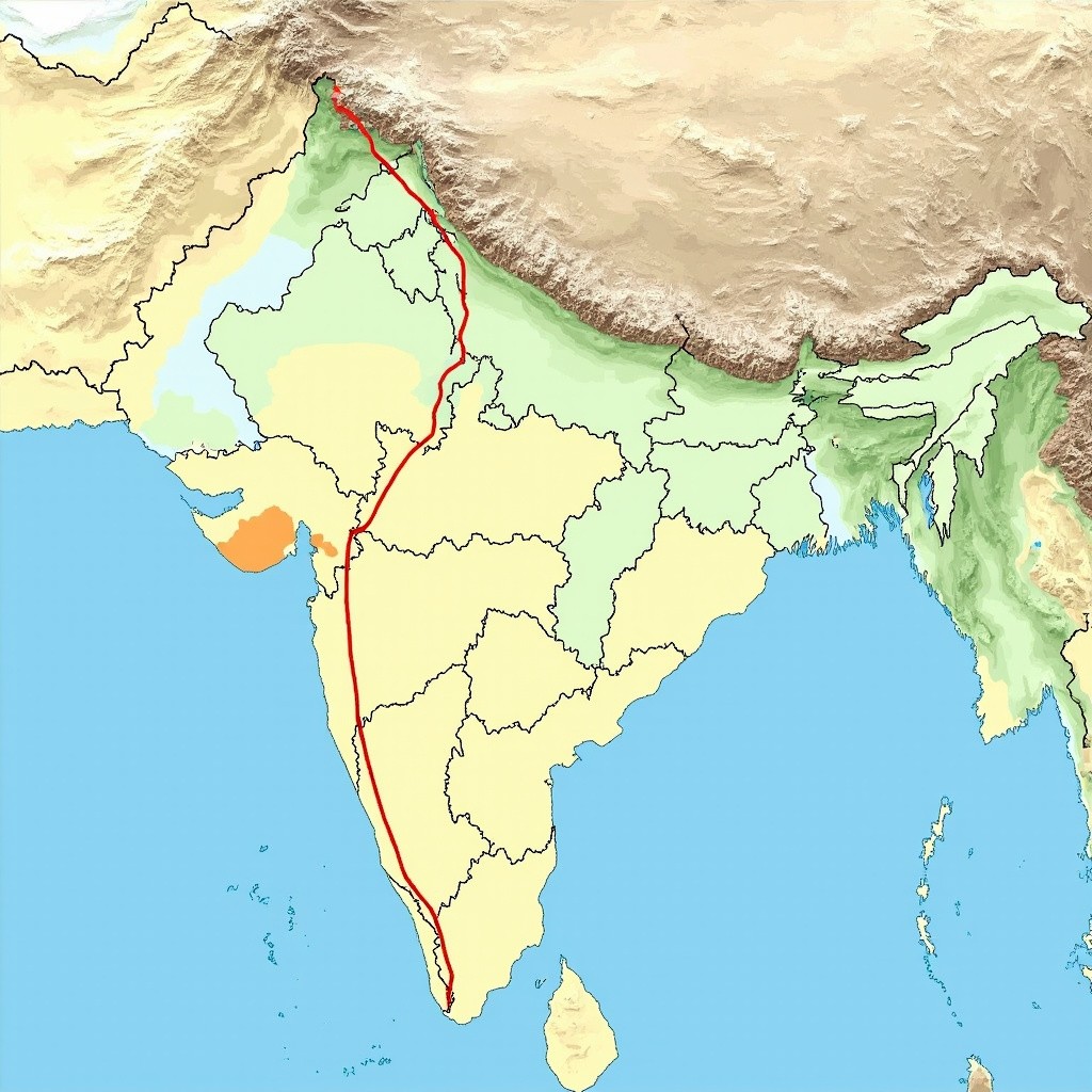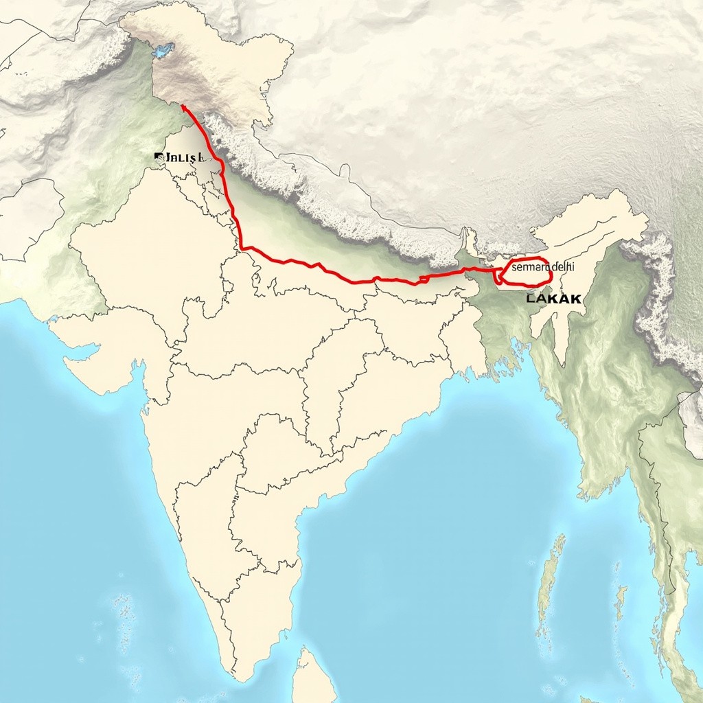 Indian Map Showing Connection From Delhi to Ladakh