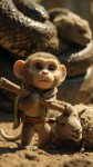 Rivo is a slightly larger monkey about the height of a small human child, with light brown fur, soft and detailed, big round expressive eyes, gentle heroic face, slightly rounded cheeks, small nose, short tail, balanced proportions, cute yet strong posture. He wears a simple rustic shepherd cloth around his waist and holds a wooden stick. Ultra realistic fur, natural colors, clean textures, consistent appearance in every frame.” Important (Clarification): Rivo is standing at a safe distance, watching the scene. Rivo is NOT touched by the snake. Rivo is NOT wrapped. Rivo is NOT in the snake’s body. Snake: A huge Hollywood-style giant python, extremely thick and long, realistic textures, terrifying presence. Sheep: One realistic sheep, medium size, struggling, completely wrapped by the snake’s coils. Scene Composition: The giant snake has the sheep tightly coiled in its body. The sheep is in the snake’s grip and trying to escape. Rivo stands nearby holding his wooden stick, shocked and worried, but completely safe and untouched. Bright daylight, cinematic realism, sharp details, dramatic tension. Focus: Snake + Sheep interaction Rivo = observer No overlap between Rivo and snake No ambiguity Ultra clear separation between characters.