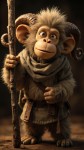 Heroic Light Brown Monkey with Wooden Stick