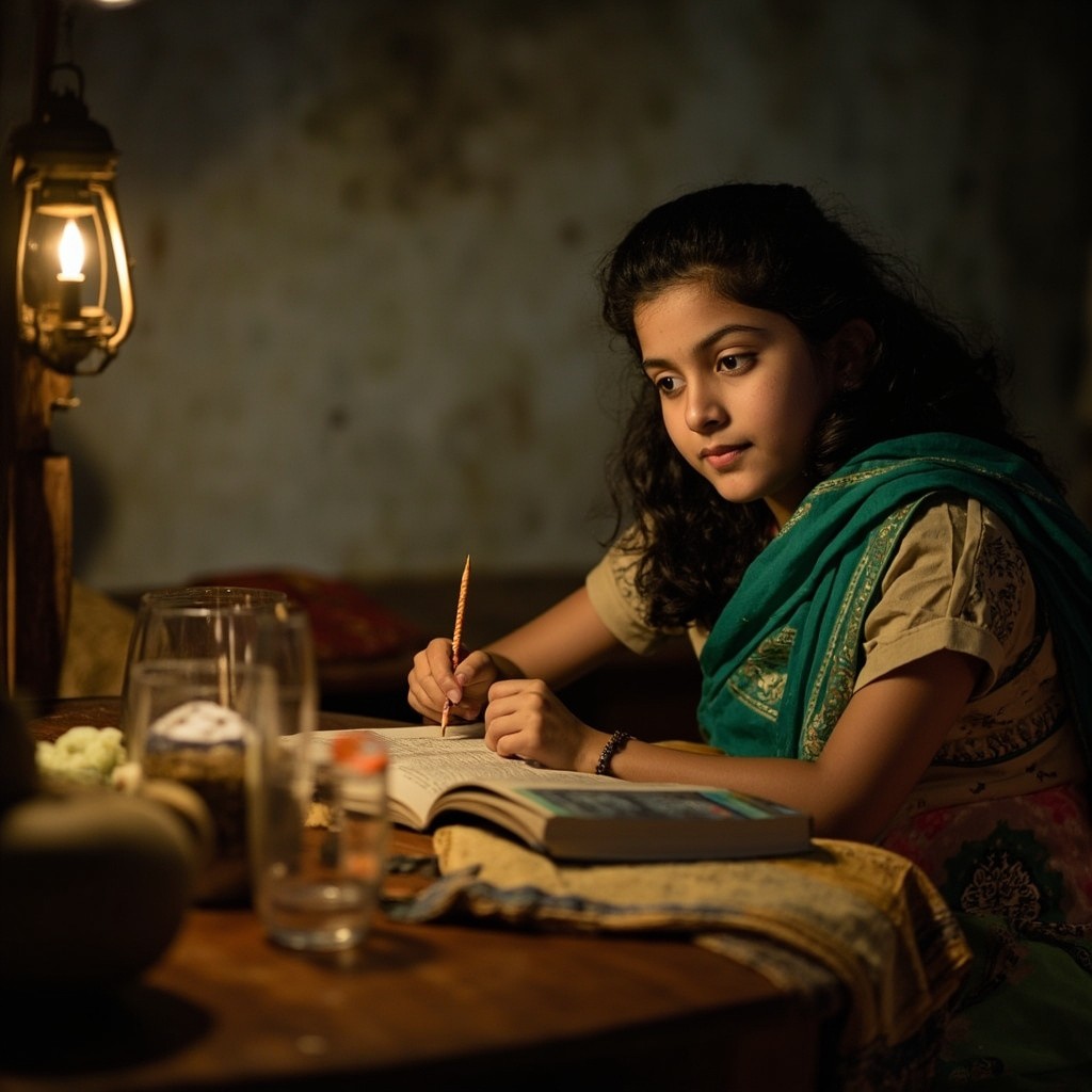 गाँव के छोटे से घर में, जहाँ सब्ज़ियों की ताज़ी महक हमेशा घुली रहती थी, वहाँ रिया का बचपन बीता। उसके पिता हर सुबह मंडी जाते, और शाम को बची हुई सब्ज़ियाँ बेचते। रिया उन्हें देखती और उनके हाथों में लगे मिट्टी को। उसकी आँखों में बड़े सपने थे, जो उस छोटे गाँव की धूल-मिट्टी से कहीं ऊपर थे। वह दिन-रात पढ़ाई करती, कभी लालटेन की रोशनी में, कभी फ़ोन की टॉर्च जलाकर। किताबें उसकी सबसे अच्छी दोस्त बन गईं। लोग कहते, "सब्ज़ी वाले की बेटी क्या करेगी?" पर रिया ने किसी की नहीं सुनी। उसके पिता भी हर संभव मदद करते। और फिर, वो दिन आया। जब नतीजों की घोषणा हुई, रिया का नाम टॉपर्स की लिस्ट में था। "रिया, सब इंस्पेक्टर की बेटी, आईएएस बनी!" ये खबर पूरे गाँव में फैल गई। एक सब्ज़ी बेचने वाले की बेटी ने अपनी मेहनत और लगन से वो मुकाम हासिल किया था, जो कई लोग सिर्फ़ सपना देखते हैं। उसकी कहानी अब गाँव के हर बच्चे के लिए प्रेरणा बन गई थी।