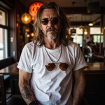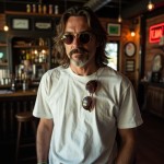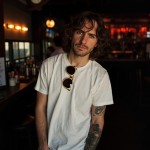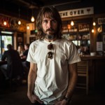 Indoor Male Rocker in Plain White T-Shirt at Dive Bar