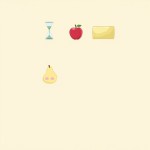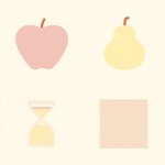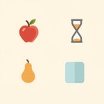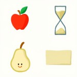 gnerate 4 illustrations: apple, hourglass, pear, rectangle. they should coordinate in terms of style. make them in a row.