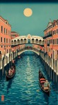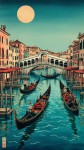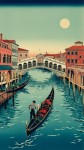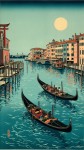 Ukiyo-e Style Venice with Samurai Gondolas and Torii Gate Bridges