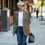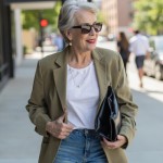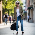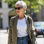 Stylish 40-Year-Old Woman with Short Gray Hair and Fashionable Outfit