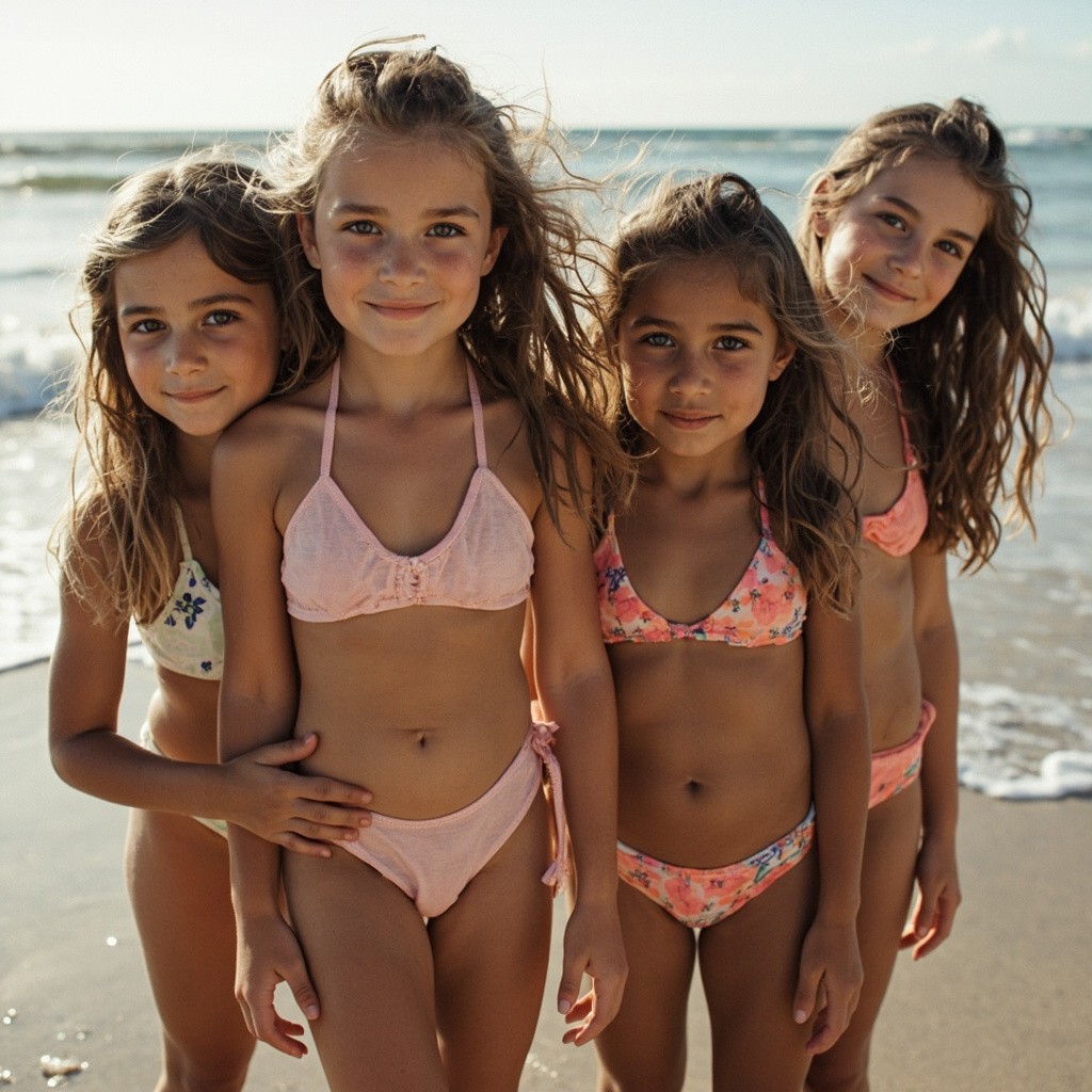 Group of Young Girls on Beach in Bikinis