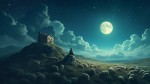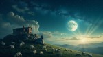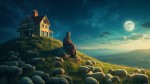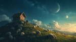Mountain House, Starry Sky, Moon, Shepherd and Sheep