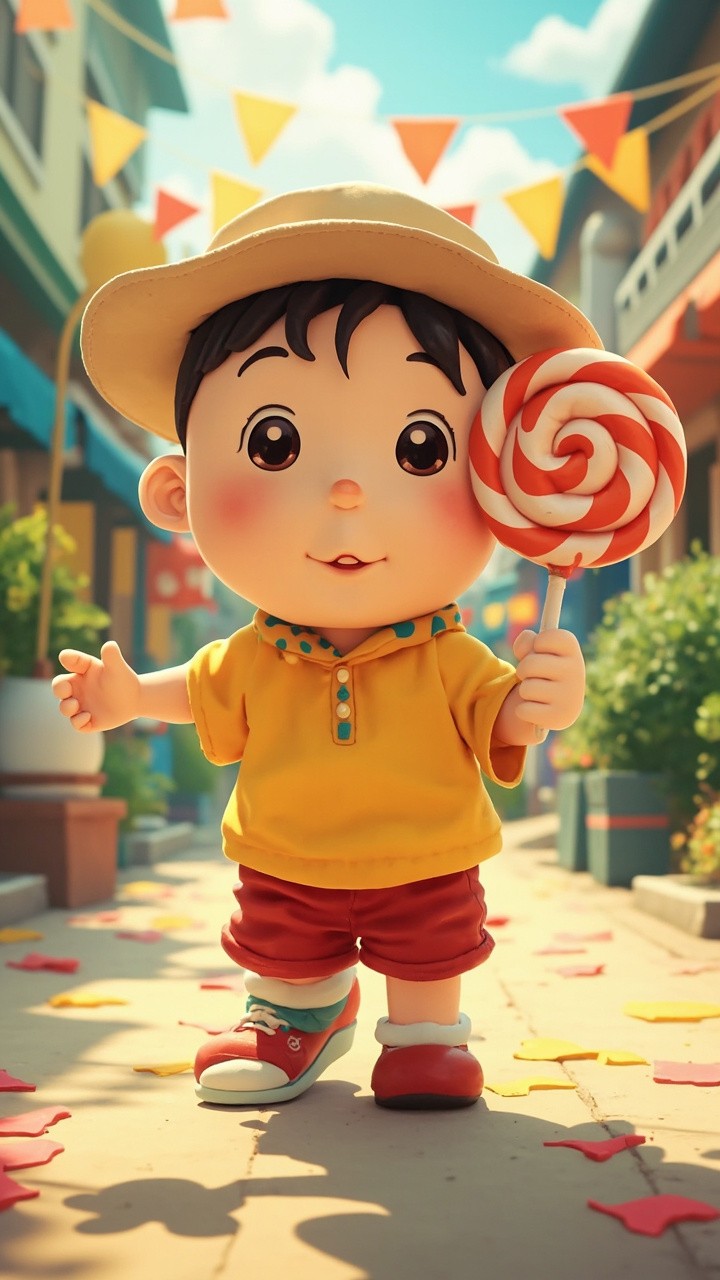 Shinchan Walking with Big Lollipop