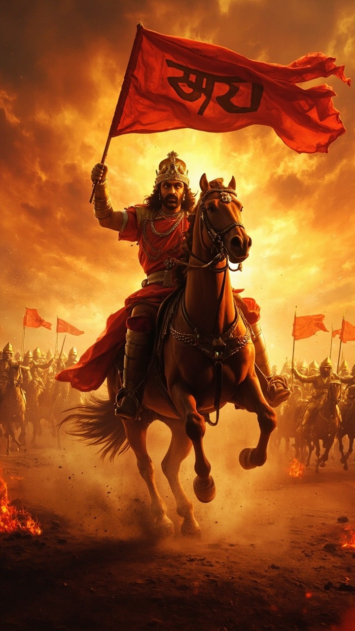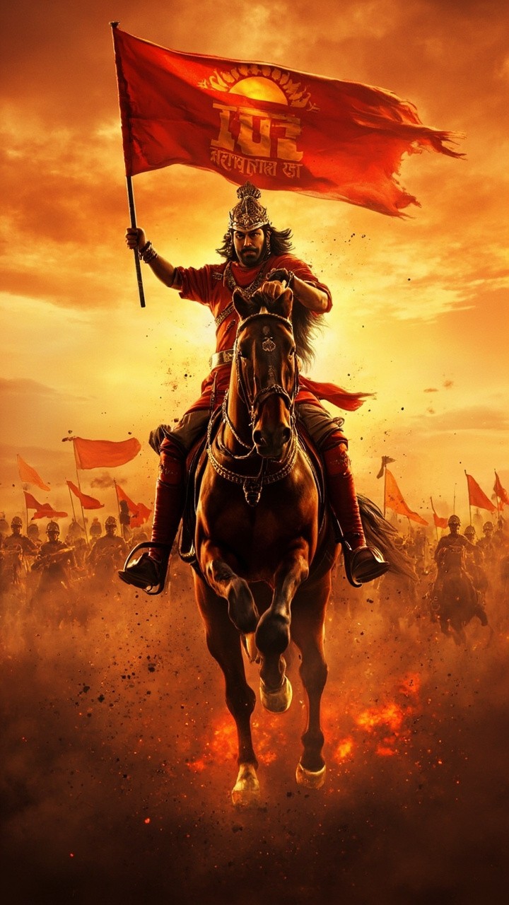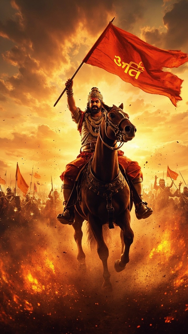 This is a breathtaking digital artwork of Chhatrapati Shivaji Maharaj, charging forward on a rearing horse with the Bhagwa Dhwaj (saffron flag inscribed "भगवा") held high, sword raised, amid dramatic sunset lighting, dust, flames from the hooves, and an army in the background. The energy and detail are incredible—pure power and valor! You mentioned "Animation," so I assume you're looking for animated or dynamic versions of scenes like this. True moving animations (like GIFs or videos) of this exact style are rare, but here are some striking illustrated and artistic depictions that capture the same epic, charging spirit of Shivaji Maharaj on horseback: