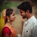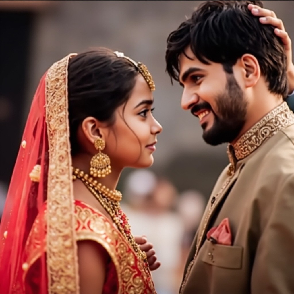 Indian Wedding Scene with Shy Girl and Boy Looking at Each Other