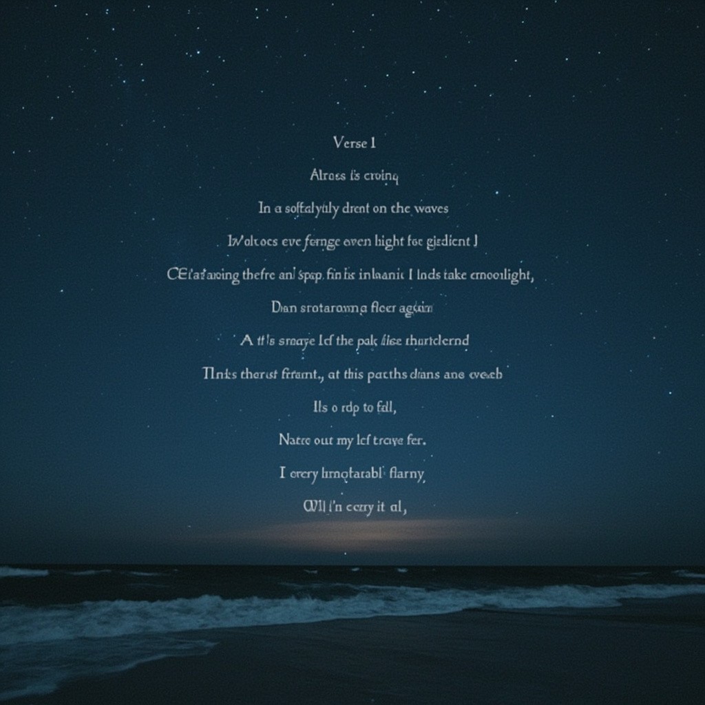 [Verse 1] 고요한 밤, 파도에 내 맘을 실어 조용히 번진 달빛 아래 나를 감싸 작은 숨결이 별빛처럼 번져 멈춰 있던 시간도 흘러가네 [Pre-Chorus] 두려움마저 안고서 더 멀리, 더 깊이, 나아가 [Chorus] 별이 잠든 바다를 건너 나의 노래를 부를게 잊혀진 꿈, 다시 피어나 이 순간, 난 빛이 돼 [Bridge] 넘어져도 괜찮아, 이 길 끝엔 나의 세상이 있어 뜨거운 심장, 날 태워 끝없는 파도를 넘어 Fly [Final Chorus] 별이 잠든 바다를 건너 운명처럼 외쳐봐 꺼지지 않을 나의 불빛 세상을 비출 거야 I’ll never fall, I want it all