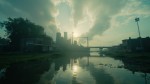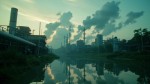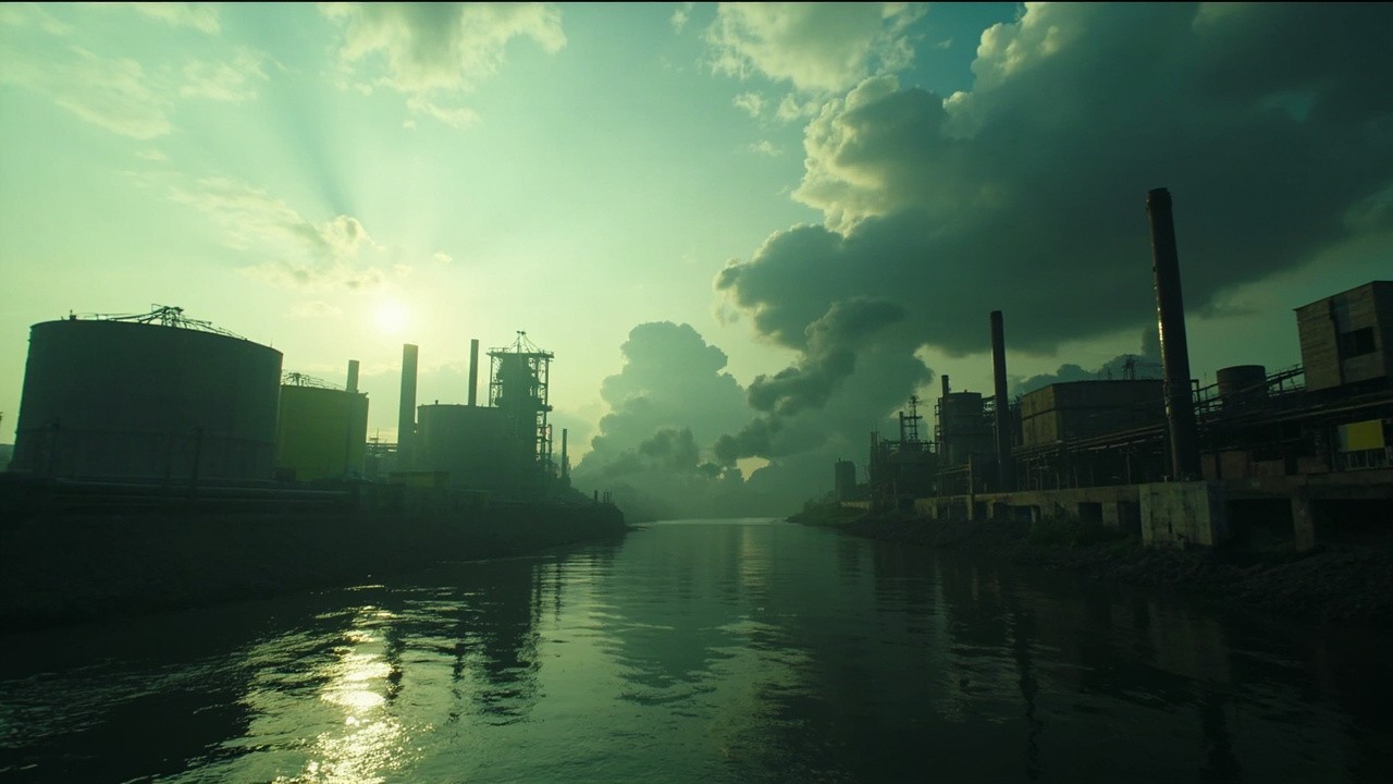 Low Angle View of Small Industrial Chemical Factory near River in India