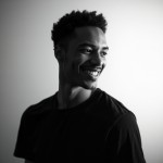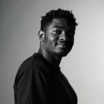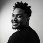 Black and White Smiling Diverse Person Portrait with Gradient Background