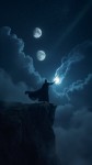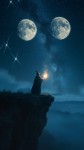 Sorcerer Casting Spell on Cliff Under Twin Moons and Shooting Stars