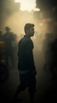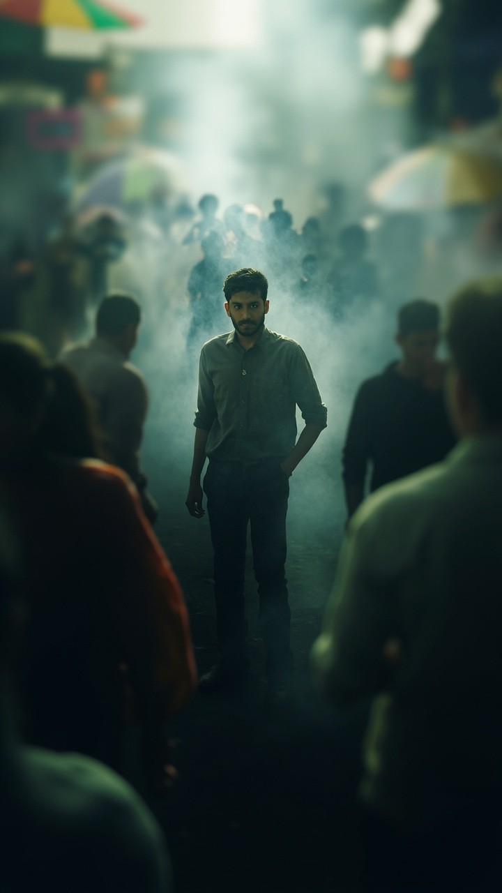 Overwhelmed South Asian Man Standing Amidst Blurry Silhouettes
