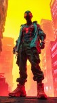 Futuristic Spider-Man in Cyberpunk Cityscape with Neon Lights
