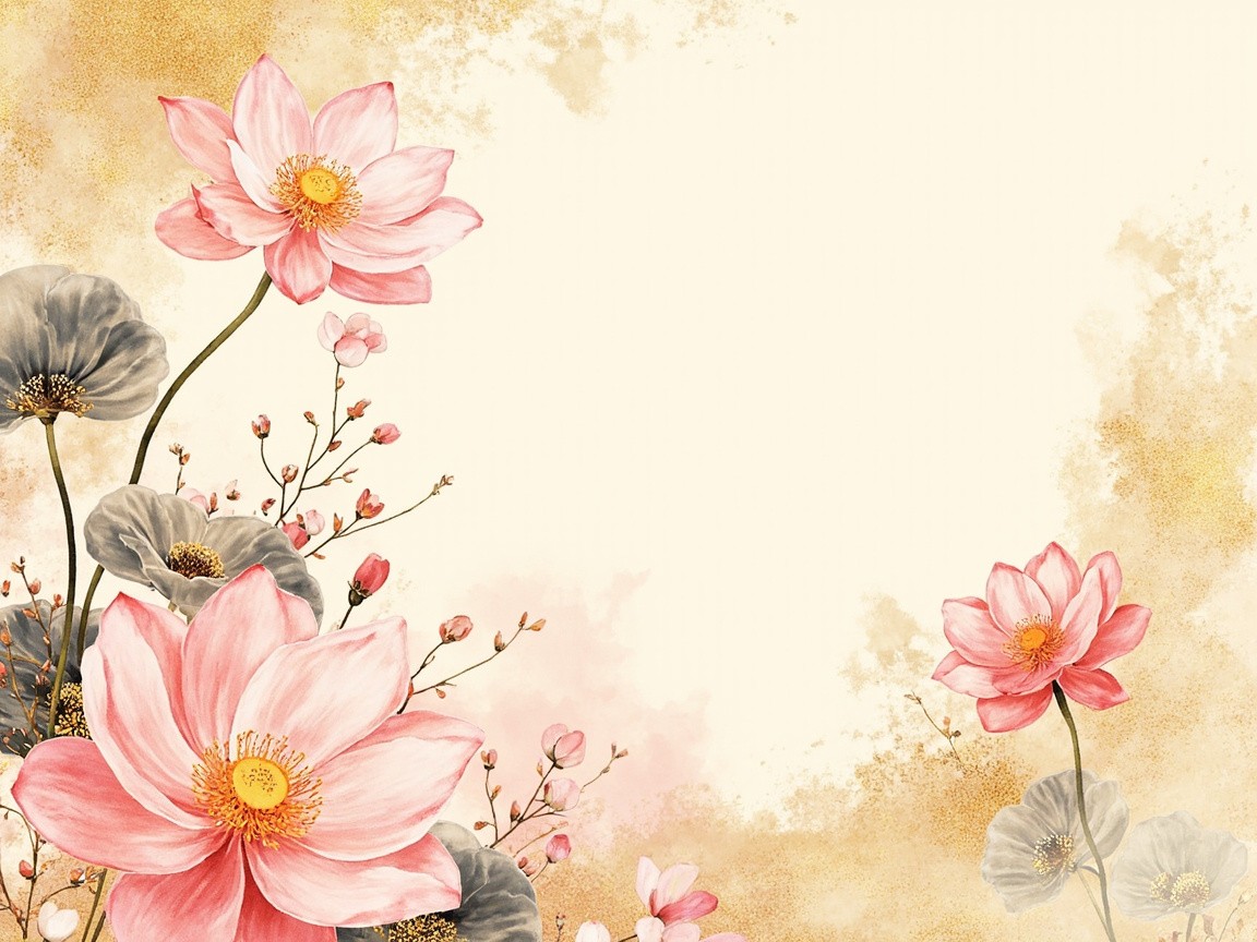 157. Spring floral in watercolor vector background. Luxury wallpaper design with lotus flowers, line art, golden texture. Elegant gold blossom flowers illustration suitable for fabric, prints, cover. illu, photography, ultra-realistic, modern aesthetic, clean design, vibrant colors, bright lighting, high contrast, natural environment, realistic textures, sharp focus, professional DSLR, 35mm lens, stock photo style, 8k, photorealism, no vintage, no retro, no antique, no old-fashioned, avoid grunge, avoid patina