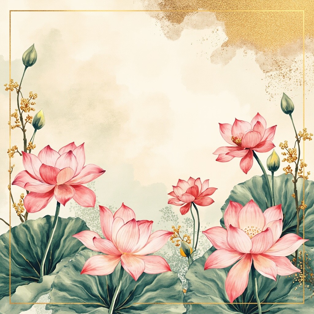 157. Spring floral in watercolor vector background. Luxury wallpaper design with lotus flowers, line art, golden texture. Elegant gold blossom flowers illustration suitable for fabric, prints, cover. illu, photography, ultra-realistic, modern aesthetic, clean design, vibrant colors, bright lighting, high contrast, natural environment, realistic textures, sharp focus, professional DSLR, 35mm lens, stock photo style, 8k, photorealism, no vintage, no retro, no antique, no old-fashioned, avoid grunge, avoid patina