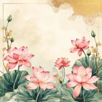 Spring Floral Watercolor Vector Background with Lotus Flowers and Golden Texture